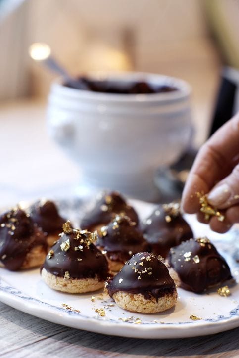 Beberapa jenis makanan dan minuman yang sering dicampur dengan emas ini antara lain pastry, kue, es krim, minuman beralkohol, dan makanan penutup.