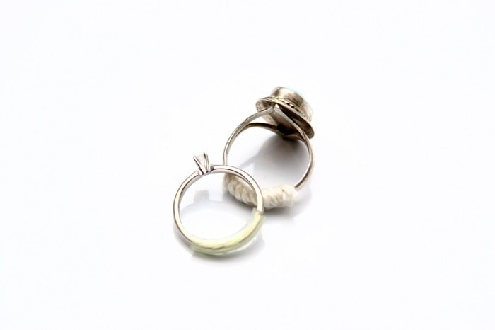Manfaatkan karet, benang, atau selotip bening untuk membuat cincin kalian tidak kendor saat dipakai.