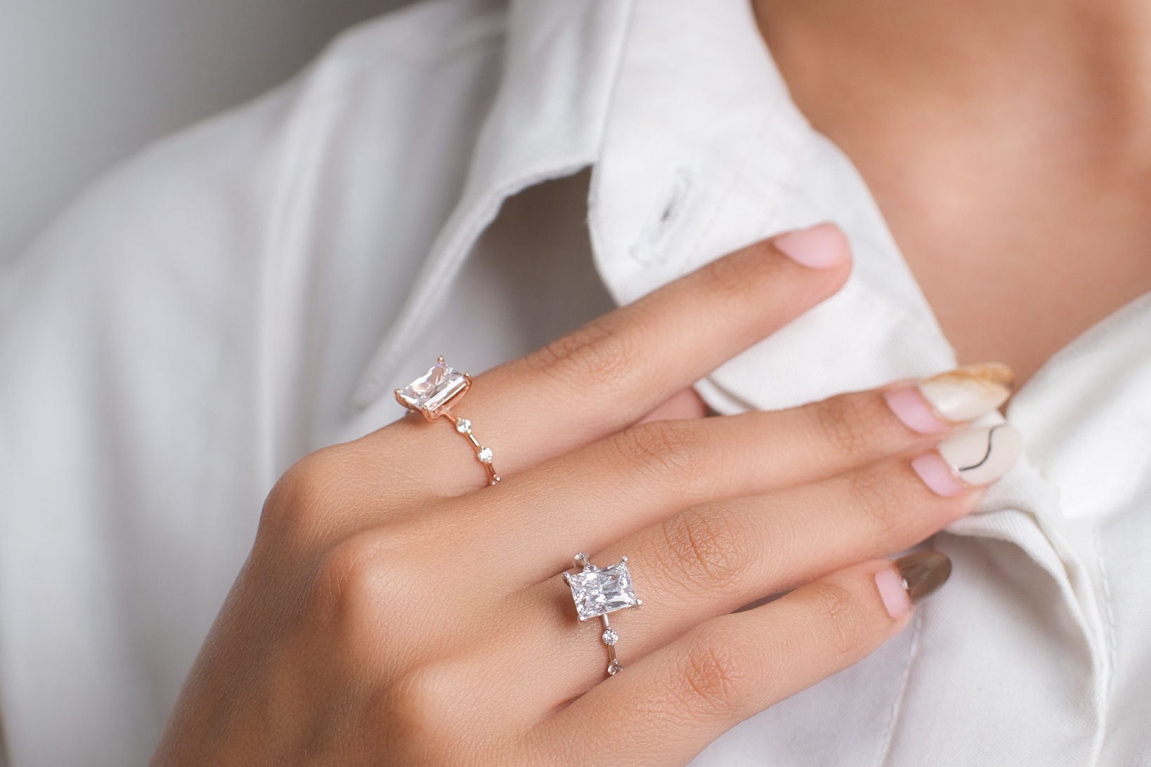 Cincin emas dengan desain minimalis adalah pilihan yang sempurna untuk office look. Hindari cincin dengan ukuran besar atau terlalu banyak hiasan. Sebaliknya, pilih cincin dengan detail yang halus, seperti cincin emas polos atau yang memiliki satu butir berlian kecil. Model ini tidak hanya menambah keanggunan, tapi juga tidak mengganggu aktivitas Sobat Jawa selama bekerja.