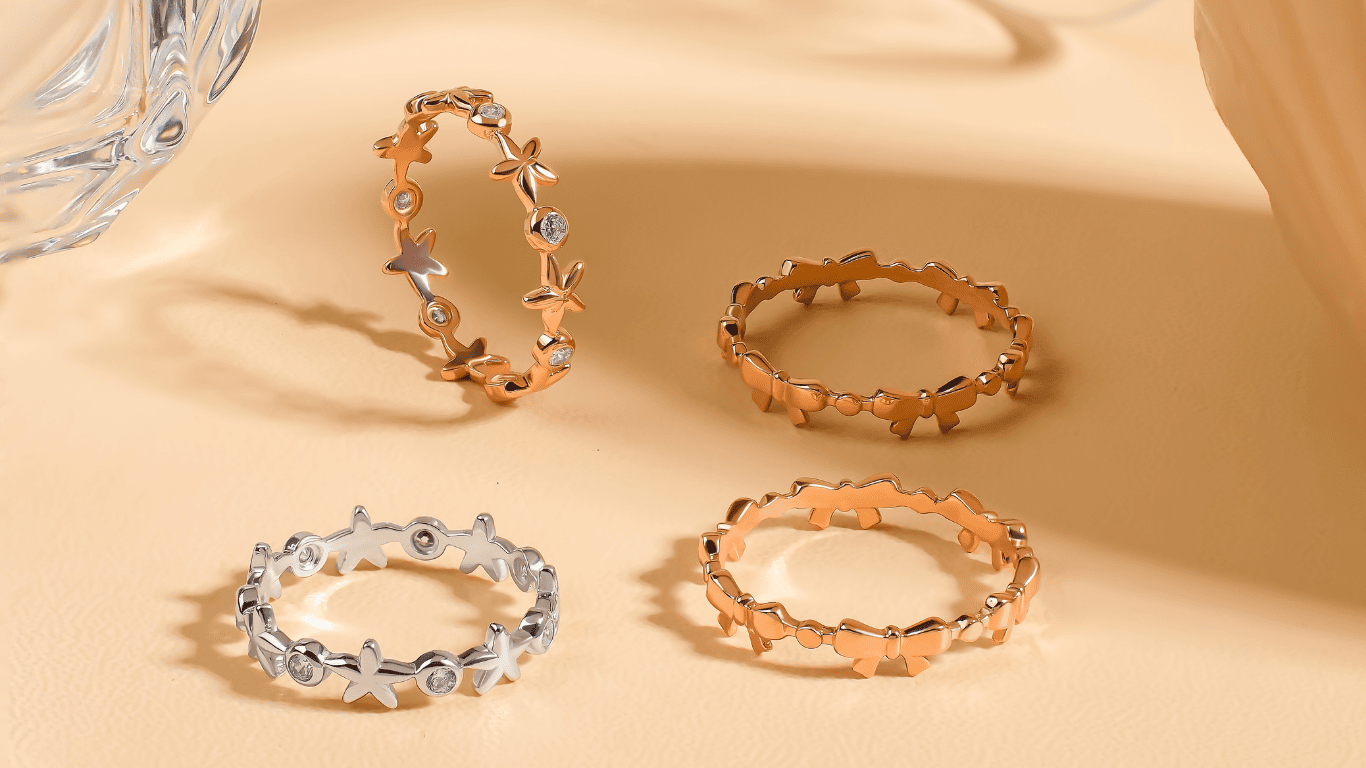 Padu Padan Tekstur: Cobalah menumpuk satu cincin Starlight perak dengan satu cincin Ribbon rose gold. Perbedaan warna dan tekstur ini menciptakan dimensi visual yang menarik perhatian namun tetap terlihat rapi.