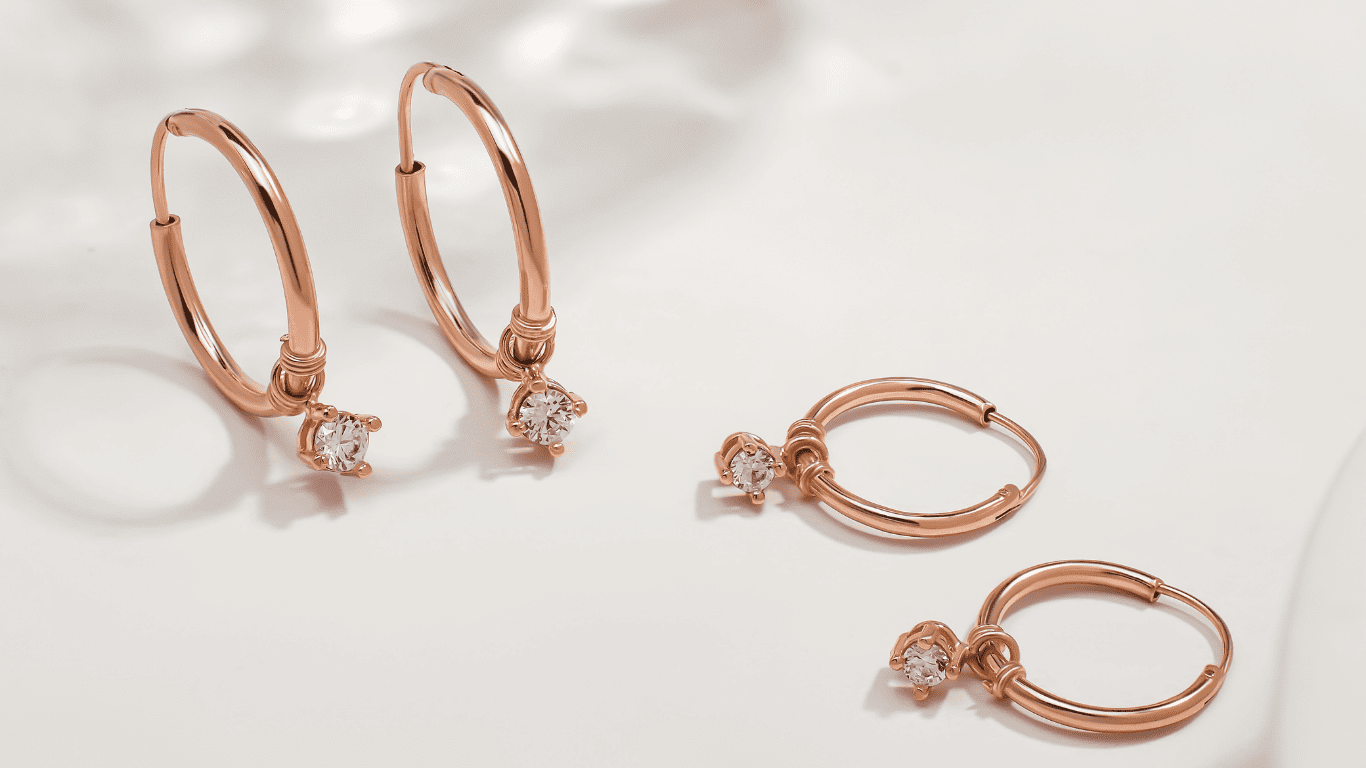 Anting Hoop Rose Gold dengan aksen solitaire adalah definisi nyata dari “kemewahan yang sederhana”.