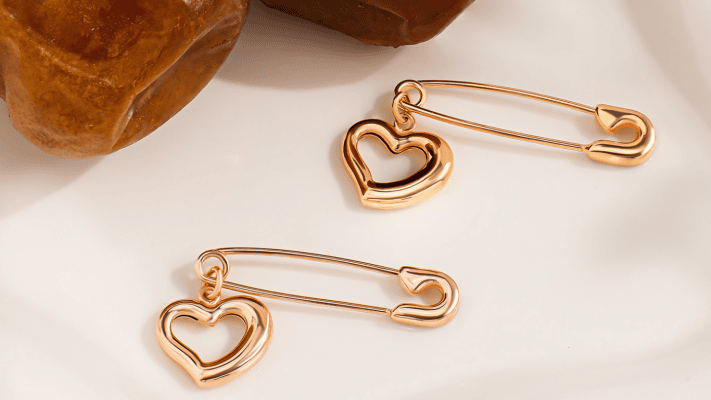 Peniti Mulltifungsi Berlapis Emas dengan Charm Hati