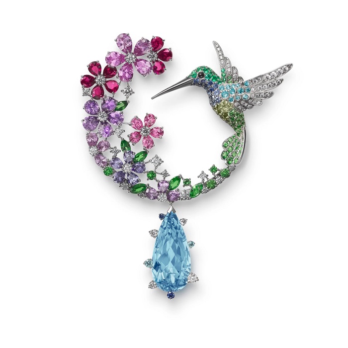 Perhiasan dari Mikimoto ini merupakan Bros bertemakan hummingbird atau burung kolibri.