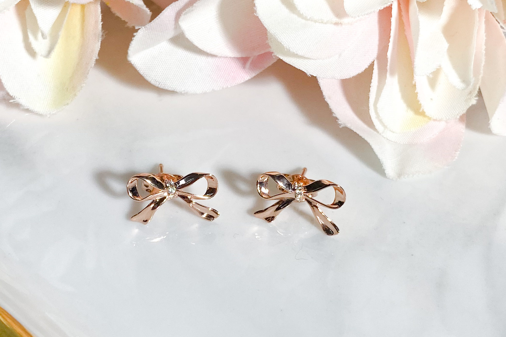 Anting dengan bentuk pita berukuran mungil dan aksen berlian kecil. Perhiasan ini cocok untuk kamu yang ingin tampil manis tanpa berlebihan.
