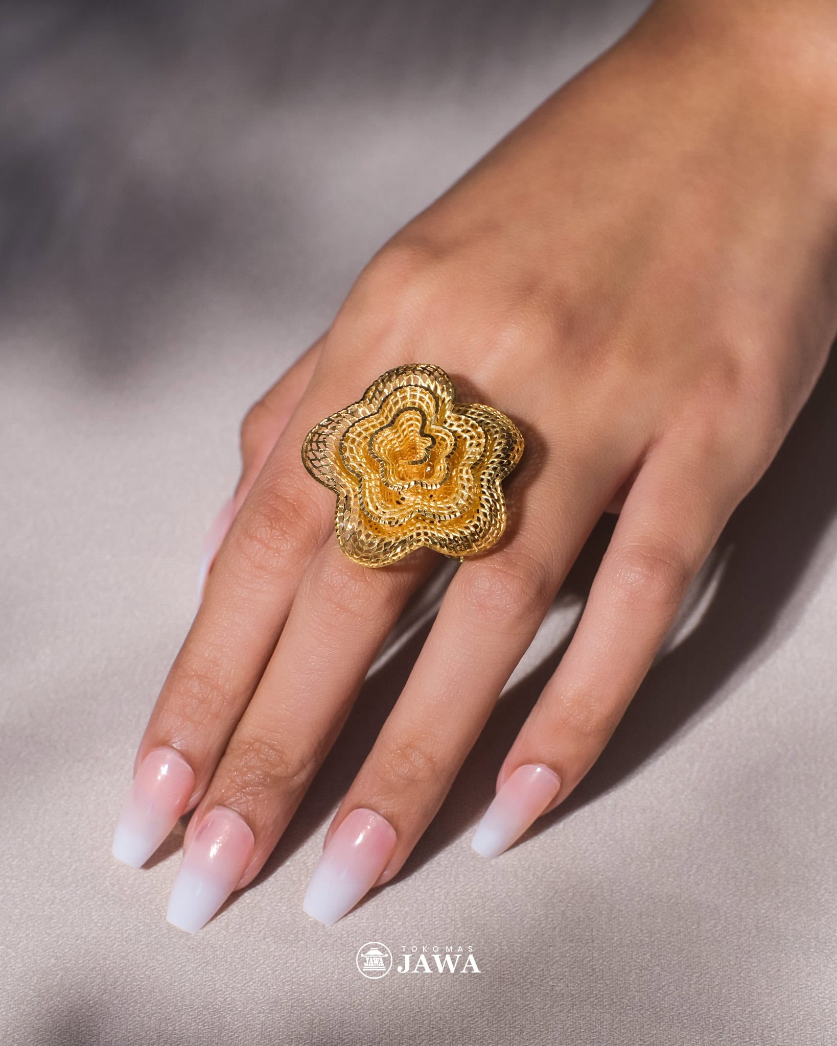 Cincin berukuran ekstra besar atau XXL rings menjadi tren statement jewelry yang sangat menonjol. Cincin-cincin ini biasanya dihiasi dengan batu permata besar atau desain unik, menciptakan penampilan yang dramatis dan memikat.